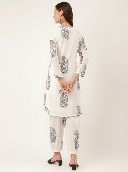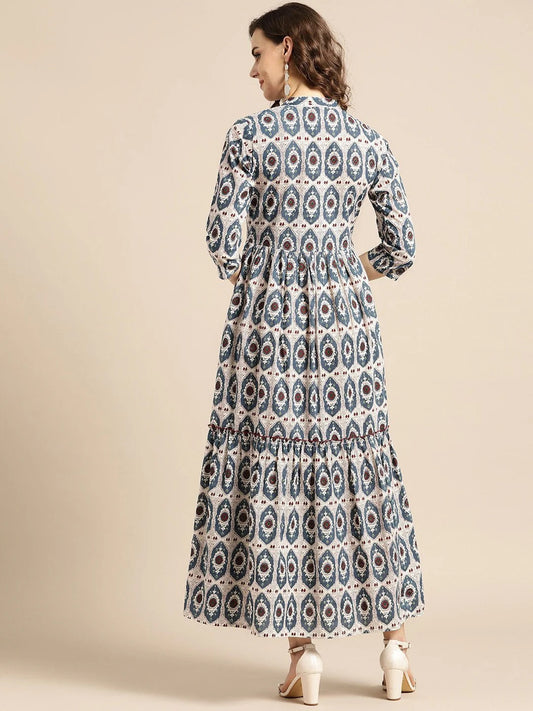 This blue printed cotton peplum top offers the perfect balance of style and comfort, making it a versatile piece for any occasion.