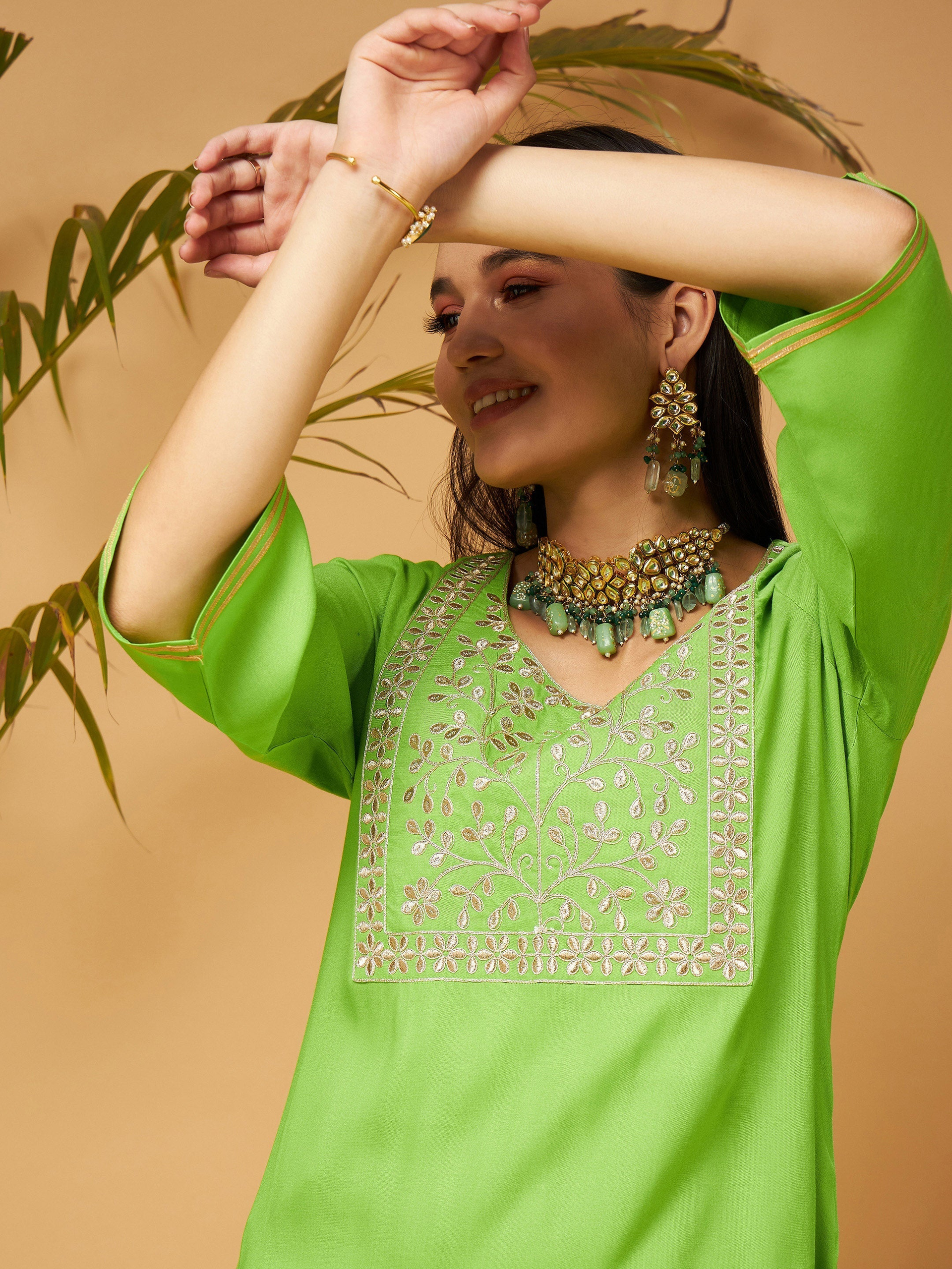 Stunning Women’s Green Gota Embroidered Kurta with Pants