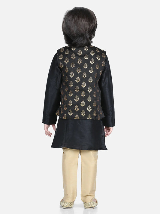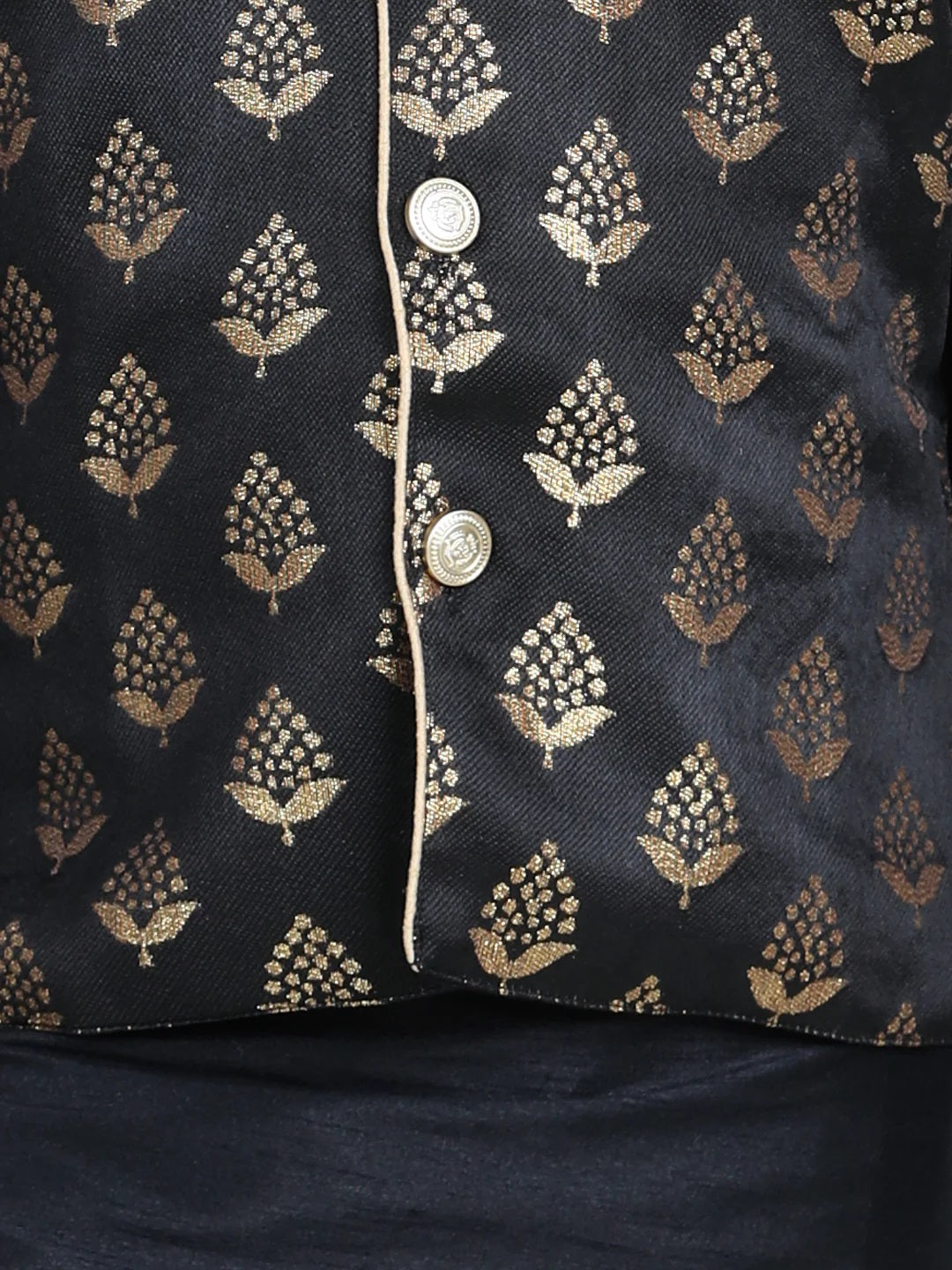 3-Piece Jacquard Jacket Silk Kurta Pajama for Boys - Black