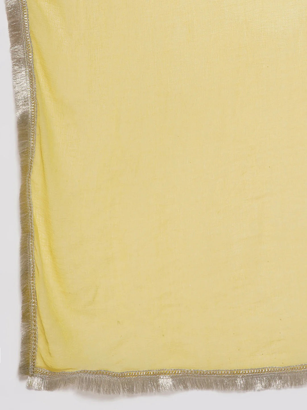 - Girls Yellow Digital Flower Print Lace work Choli Ready to wear Lehenga with Dupatta