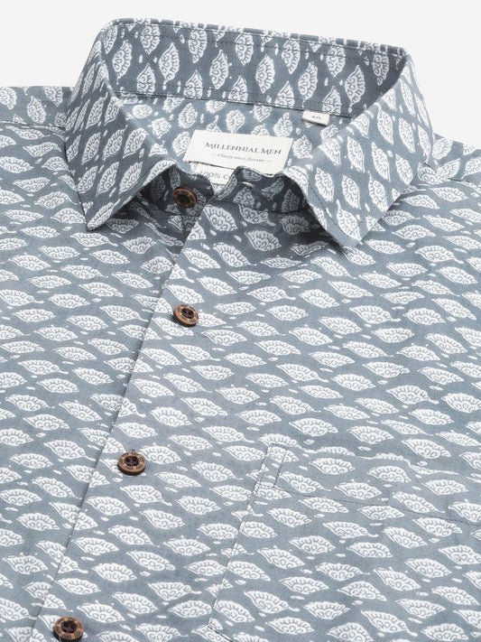Classic Printed Spread Collar Short Sleeves Cotton Casual Shirt