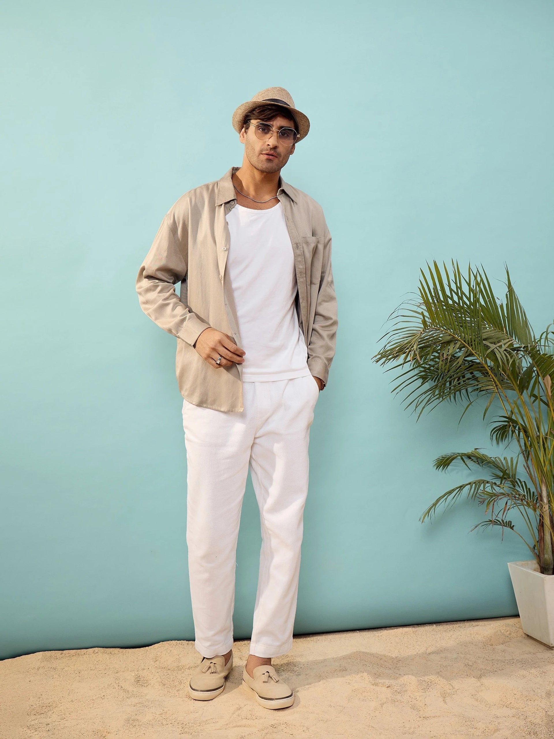 Men’s Beige Twill Oversized Shirt – Casual Style with Premium Comfort