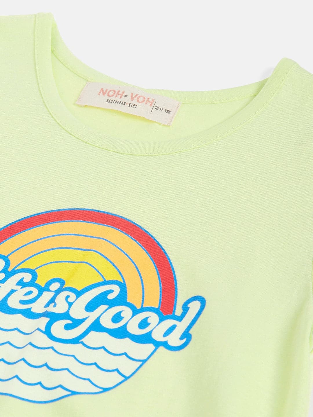 Let your little one shine in the Girls Green Life-Is-Good Tent Dress, a delightful blend of comfort and playful style. Crafted from lightweight and breathable fabric, this dress is perfect for all-day wear. Its vibrant green hue and relaxed tent silhouette make it ideal for casual outings, picnics, or playdates, offering a mix of charm and practicality. The sleeveless design and easy fit provide freedom of movement, while the high-quality stitching ensures durability.
