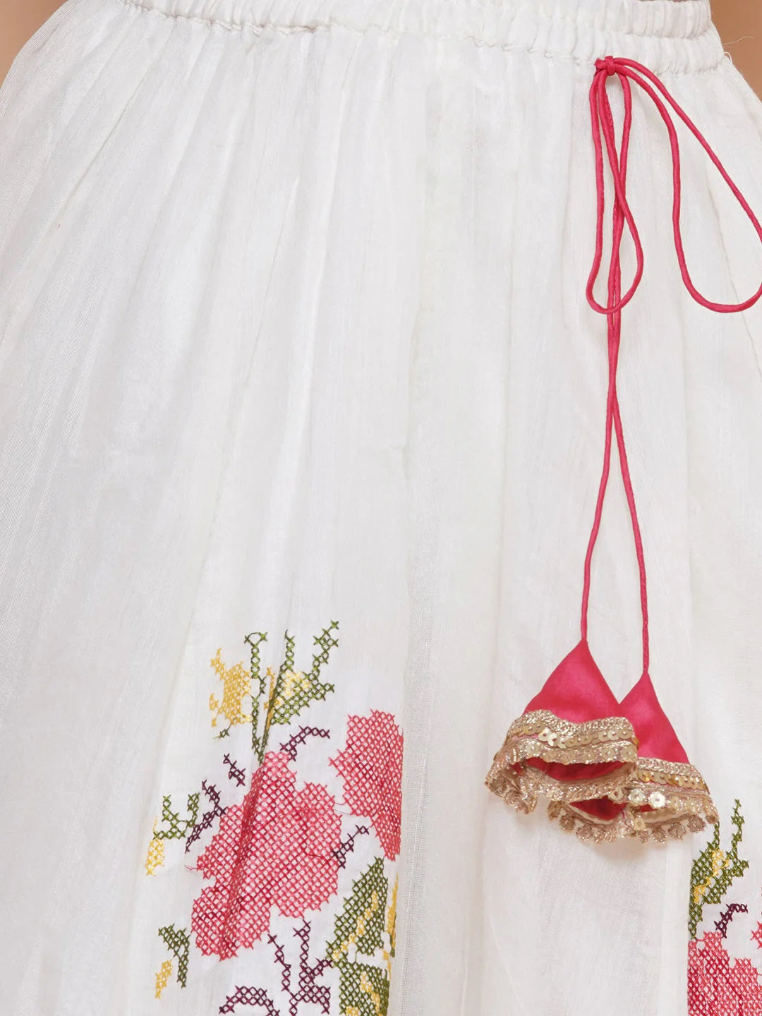 Girls Peach embroidered choli & floral embroidered Design Lehenga With Dupatta