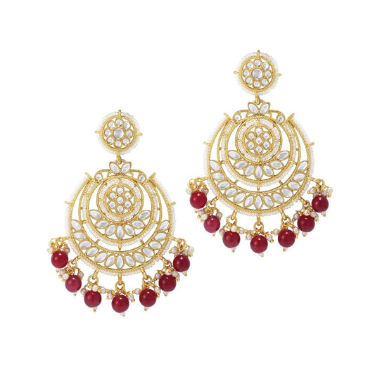Gold-Plated Traditional Beaded Chandbali Earrings with Kundan & Pearl – Exquisite Charm for Special Occasions