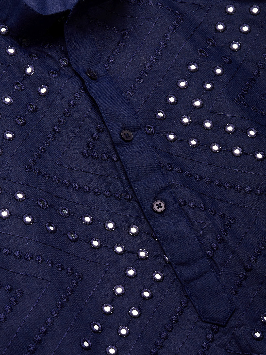 Men'S Navy Embroidered Mirror Work Kurta Only