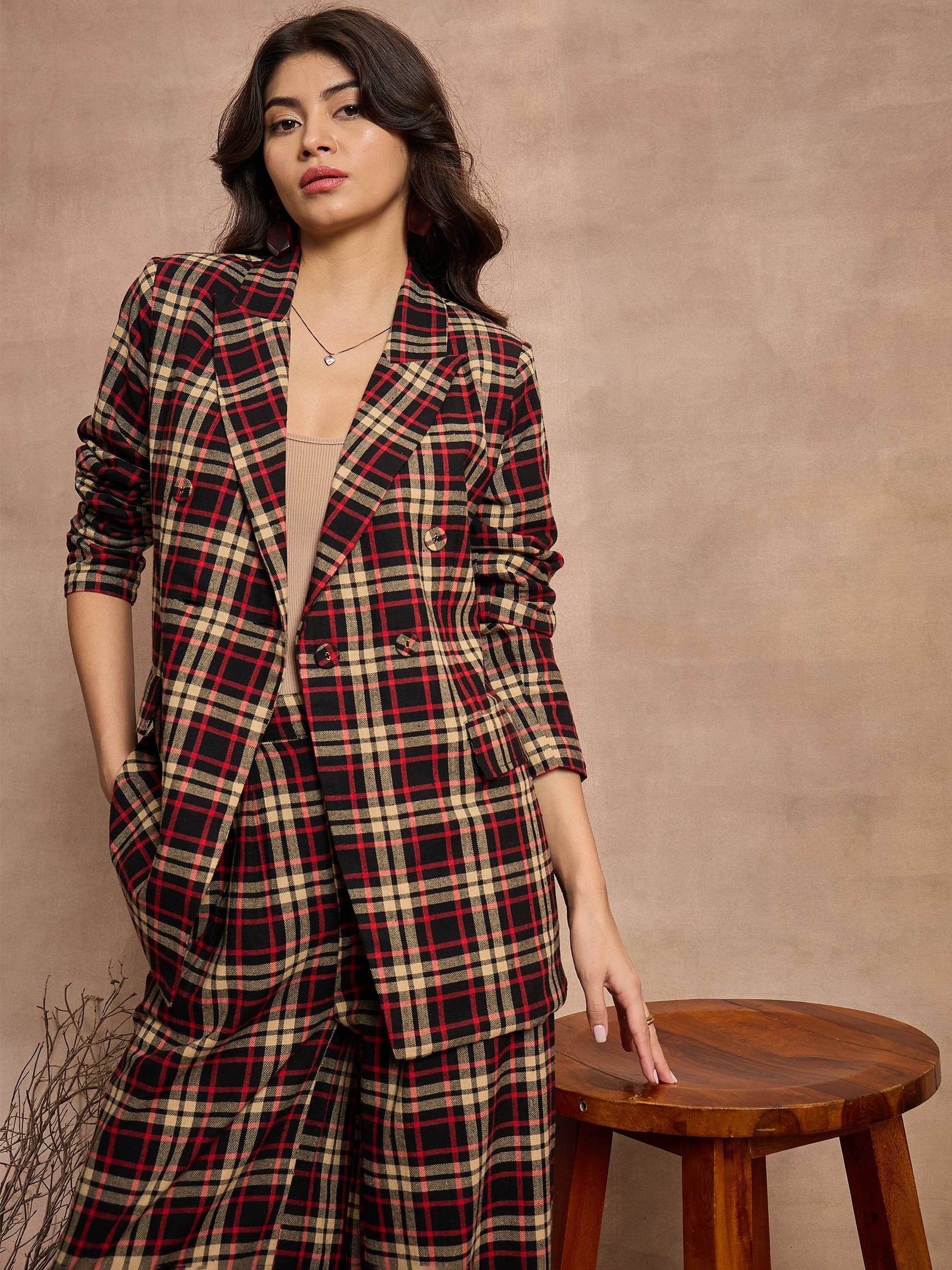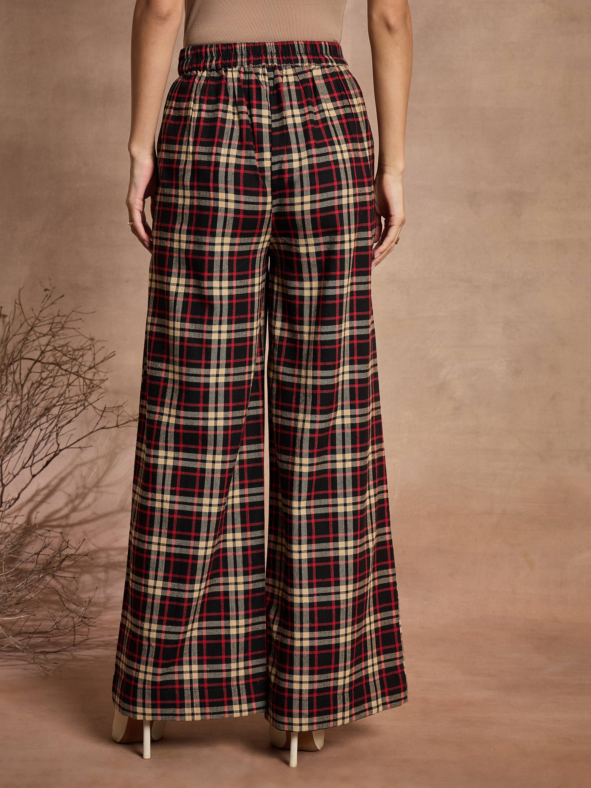 Elevate your wardrobe with these stylish Women’s Black & Beige Check High Rise Wide Leg Pants, a perfect blend of comfort and sophistication. The unique checked pattern adds a modern twist to a classic design, making them versatile enough for both casual and semi-formal occasions. The high-rise fit elongates the legs, while the wide leg silhouette offers a flattering, breezy look, ensuring you stay both fashionable and comfortable.