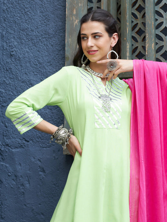 Step out in this floral embroidered cotton fit & flare ethnic dress for a charming and effortlessly stylish look.